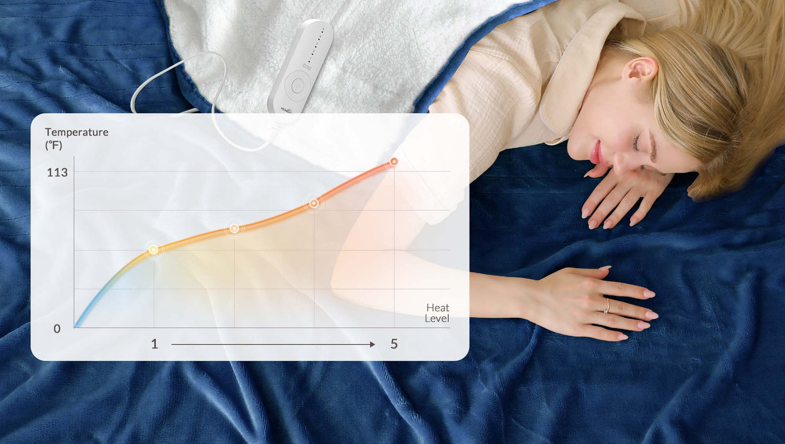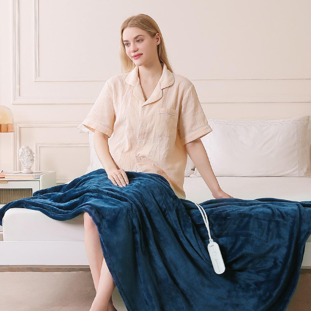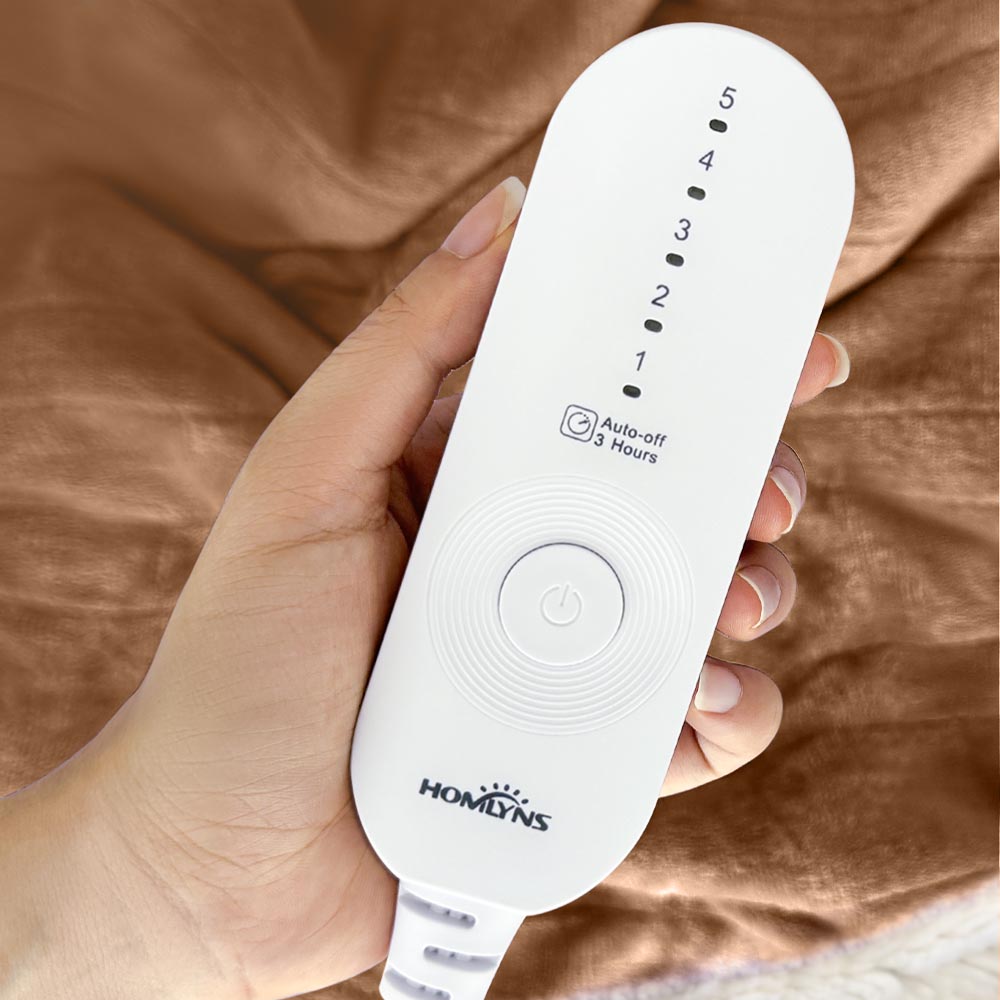 Heated throw blanket with 3-hour auto shut-off timer and 5 heat settings.