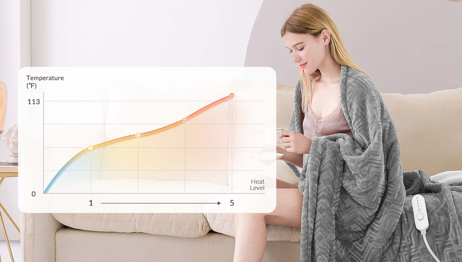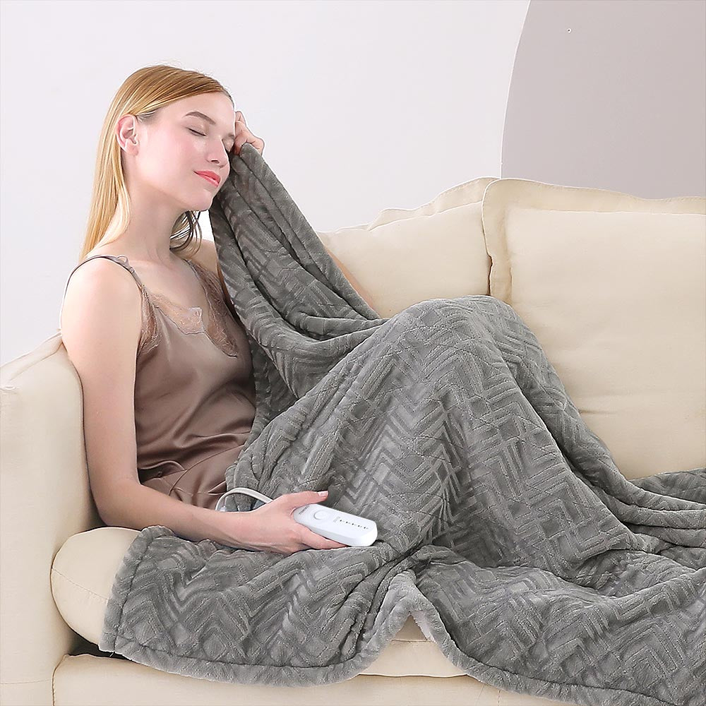 Heating throw blanket with 3 hours auto shut-off timer and 5 temperature settings.